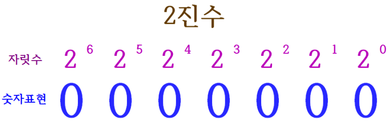 일단 계산을 할때 2진수의 자리마다의 값이 의미하는 것을 알아야한다.